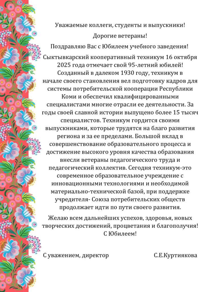 СЫКТЫВКАРСКОМУ КООПЕРАТИВНОМУ ТЕХНИКУМУ 95 ЛЕТ!