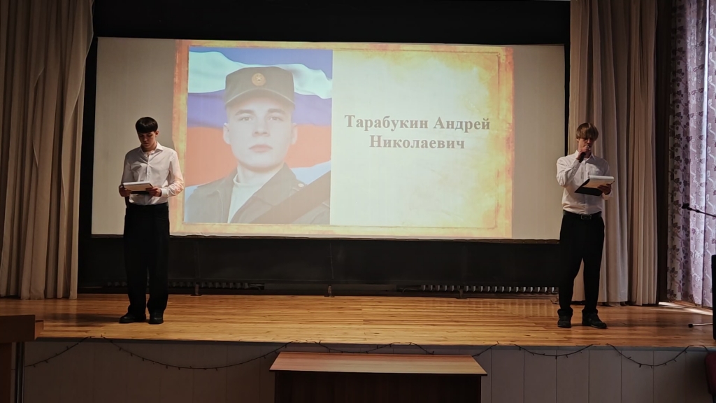 Минутой молчания присутствующие почтили память выпускников техникума, погибших при исполнении воинского долга в ходе специальной военной операции: Тарабукина А.Н., Брагарника Р. А.